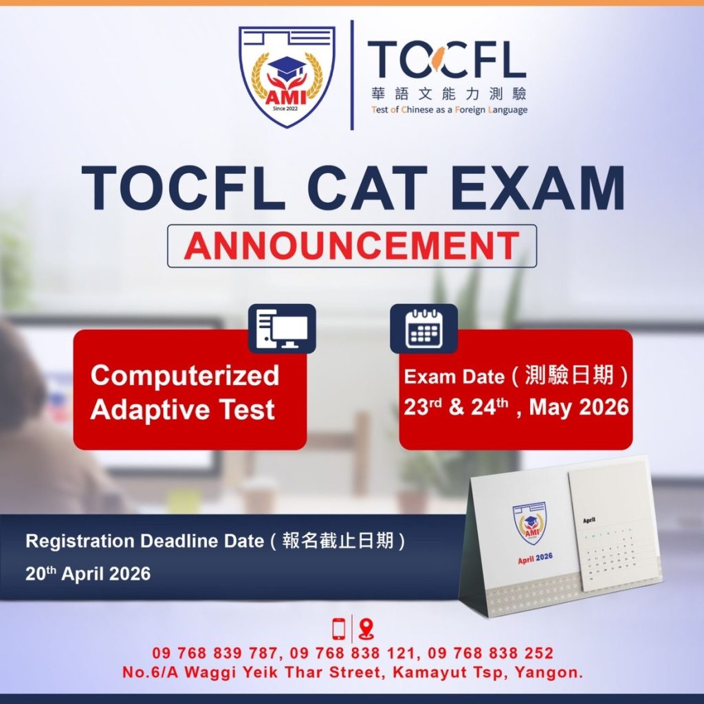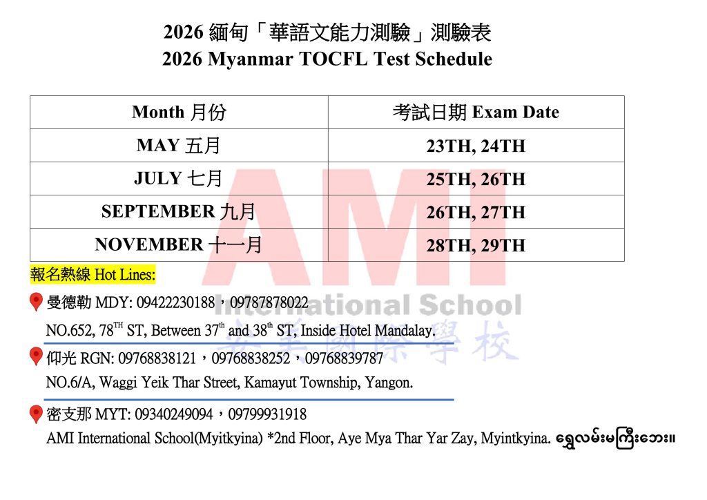 တရုတ်ဘာသာအရည်အချင်းစစ်စာမေးပွဲတွင် ဝင်ရောက်ဖြေဆိုရန် စာရင်းပေးသွင်းမည့် ကျောင်းသားကျောင်းသူများ သိရှိစေရန်